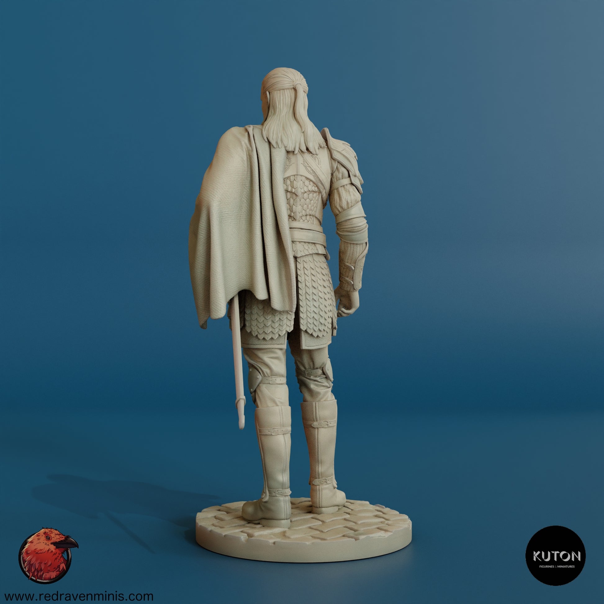 This statue is of Prince Daemon Targaryen as portrayed by Matt Smith on the TV series House of the Dragon.